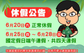 聯億材料 祝大家端午安康! Dragon Boat Festival! ※休假公告:國定假日端午連假109.6/25(四)~6/28(日),共四天連假。 除破碎的心黏不住,其他皆可為您服務 Everything we bond, [...]